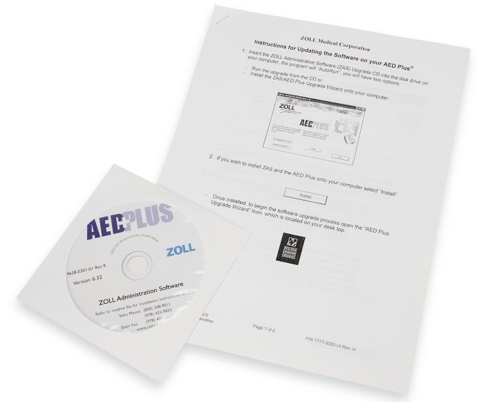 ZOLL administrationsprogram (ZAS) på CD-ROM är kompatibelt med ZOLL AED Plus. Programvaran underlättar underhållsuppgifter när din defibrillator är ansluten till en dator (PC). Den möjliggör uppladdning av data från hjärtstartaren till datorn, vilket sedan kan överföras till ditt huvudnätverk eller skrivas ut direkt från din PC till en skrivare.